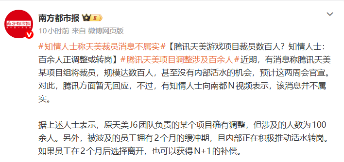 人士显露据上述,的某个项目确有调理原天美J6团队掌握,为100余人但涉及的人数。表另员调整?知情人士回,有2个月的缓冲期被波及的员工拥,极促进活水转岗且内部正正在积。个月后拣选脱离假使员工正在2,N+1的赔偿也能够获取。